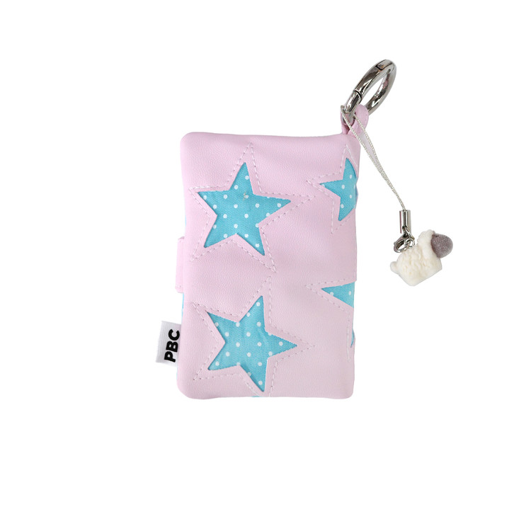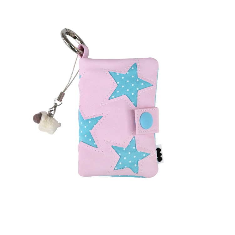 -별을 따라 스티치가 새겨진 패브릭 카드지갑 (키참 포함)