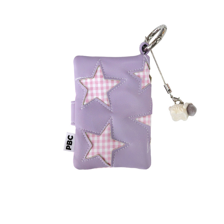 -별을 따라 스티치가 새겨진 패브릭 카드지갑 (키참 포함)